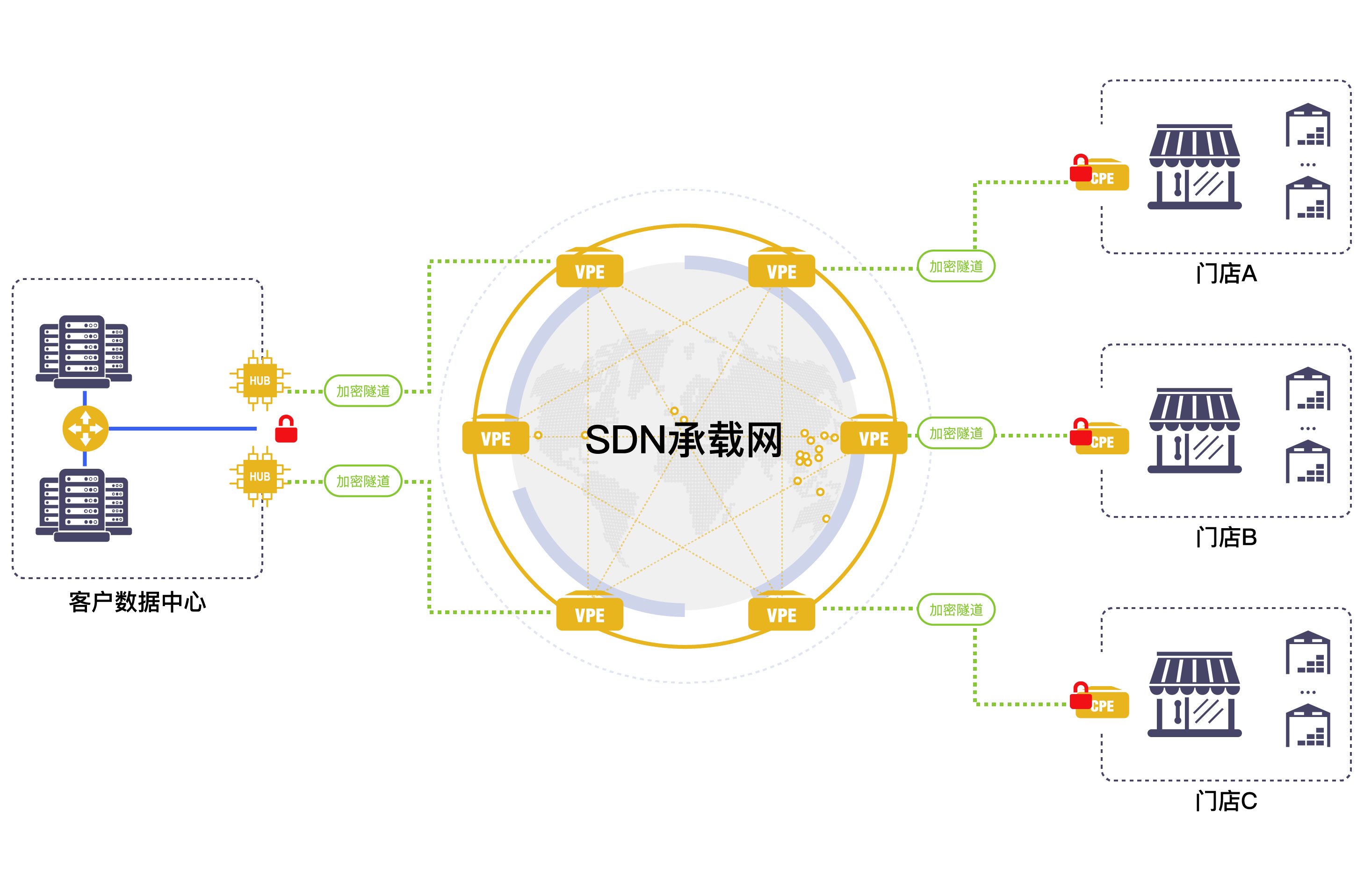 SD-WAN线路支持端到端全程加密,充分保障移动办公人员数据传输的安全性。