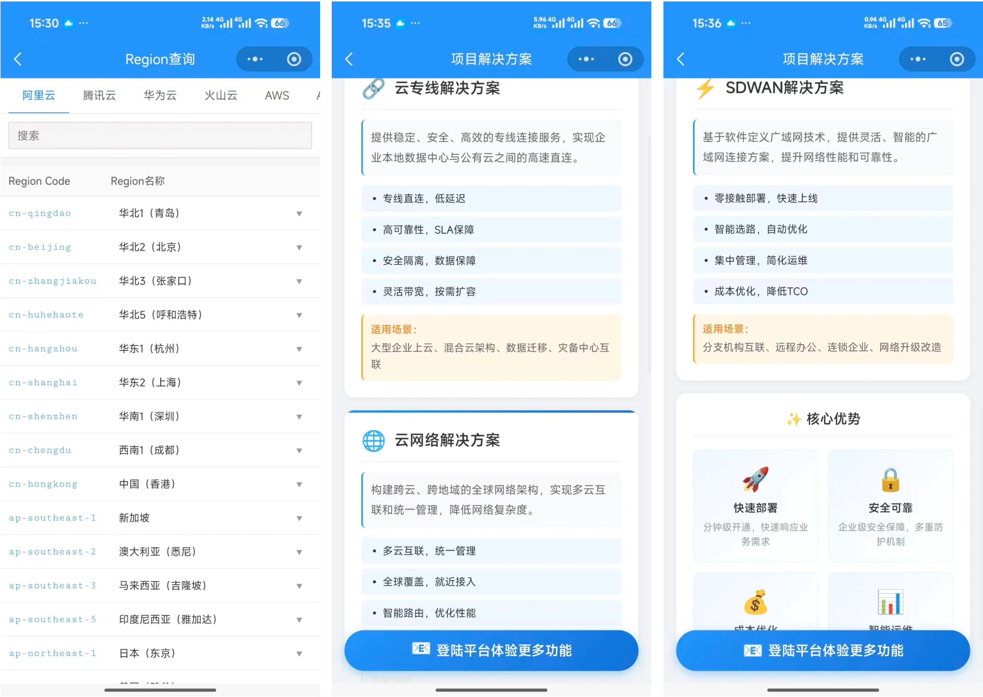 3、主流云Region与接入点查询:极速部署全球云站点、最优路径规划。
