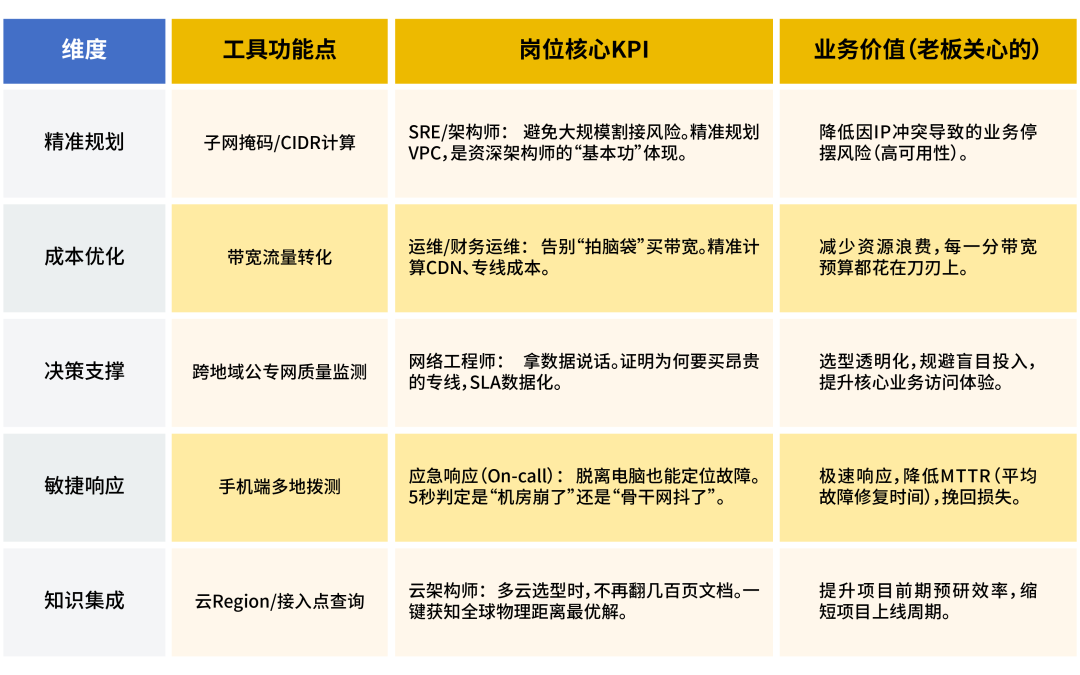 在云与AI深度融合的2026年,网络运维已从“被动救火”进化为“精准预判”;这套集IP规划计算、带宽流量换算、全球监测/拔测于一体的利器,助你以数据化手段降低故障率并极致优化带宽成本,实现从经验驱动到高效价值创造的转型。