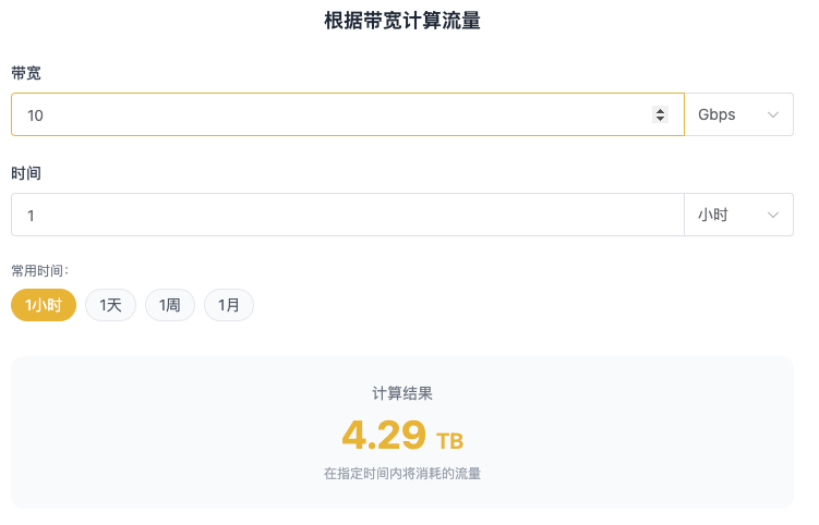 1、带宽与流量转化计算:精准测量您的业务所需带宽及时间,让业务用量可被计算。