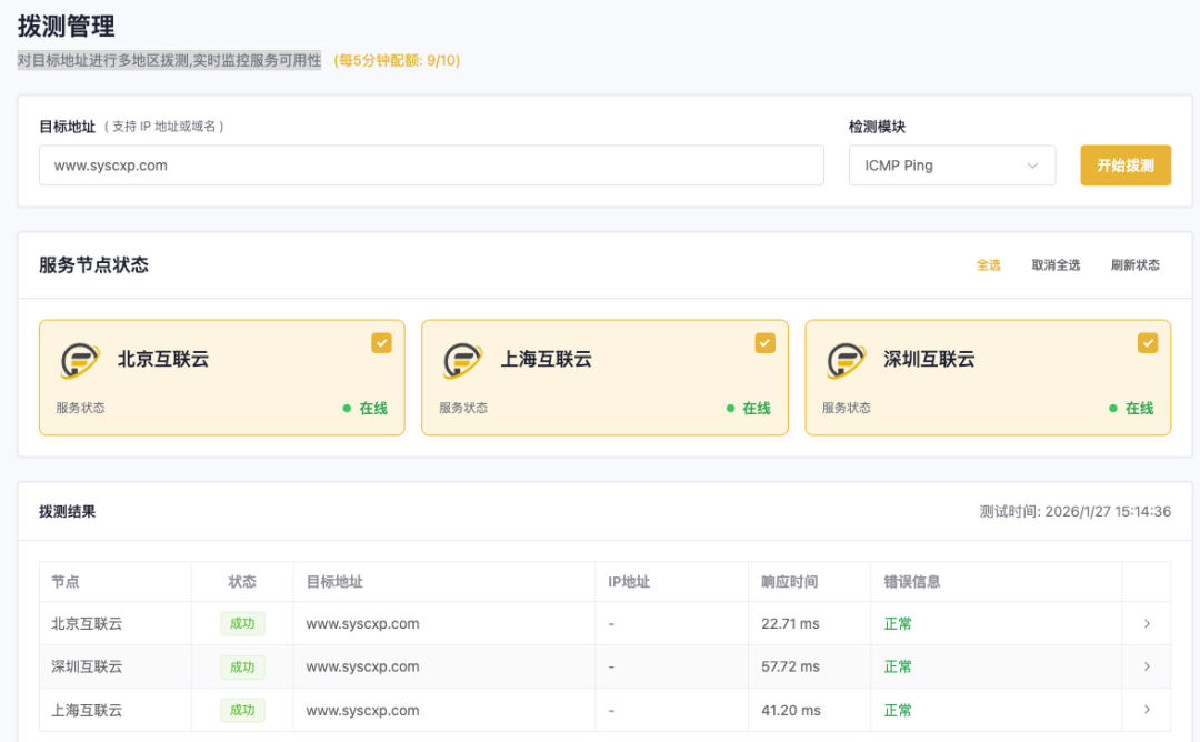 1、多地区网络向目标站点 ICMP Ping检测