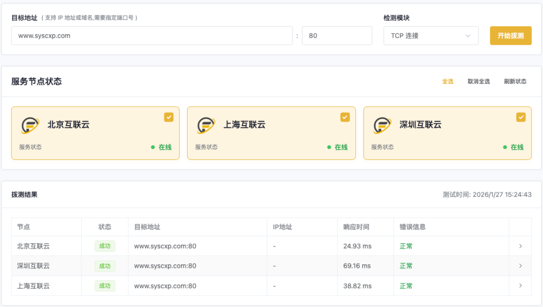 2、多地区网络向目标站点 TCP连接检测
