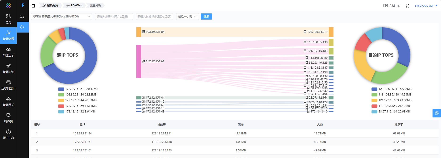 基于IP五元组,实现云、DC、总分支等全域网络流量业务精准分析。